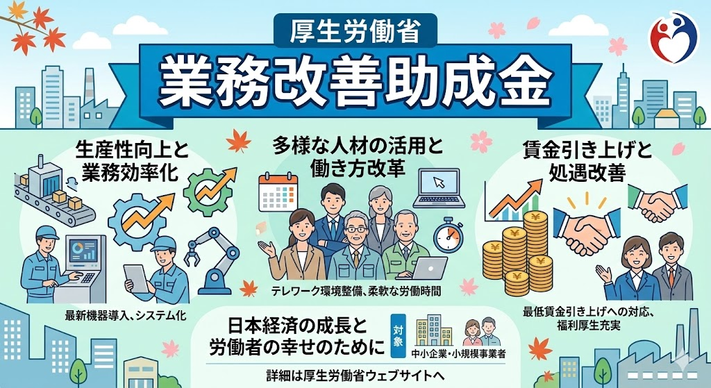 業務改善助成金は、「事業場内で最も低い賃金(事業場内最低賃金)」を一定額以上引き上げ、かつ**「生産性向上のための設備投資など」**を行った場合に、その設備投資にかかった費用の一部を国が助成してくれる制度です。