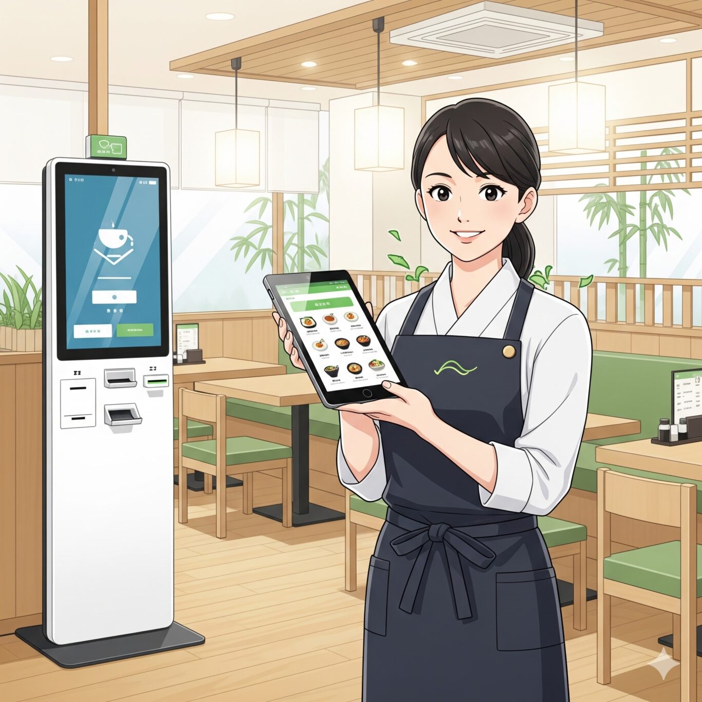 - タブレット型セルフオーダーシステムの導入 注文から提供まで手作業で行っていたものを自動化。注文処理時間が1日90分から18分に短縮され、客の回転率が20%向上しました。